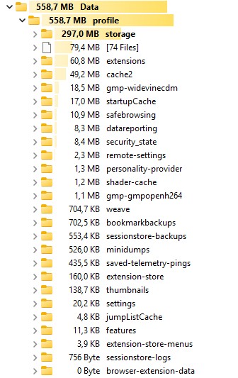 Ad ogni modo, qui c’è l’albero delle cartelle con le loro dimensioni: