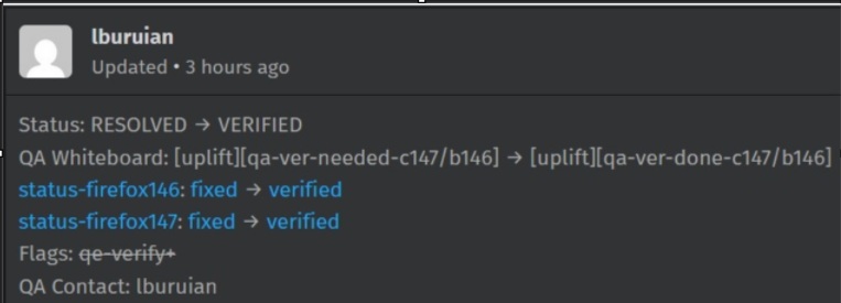 che afferma la correzione del bug sia  in FF 146 che 147.