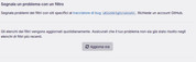 Ho provato anche "segnala un problema con un filtro" ma richiede