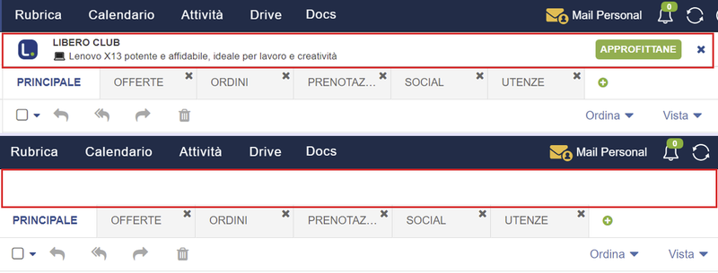 ! RIMOZIONE PUBBLICITA' BARRA SUPERIORE EMAIL LIBERO